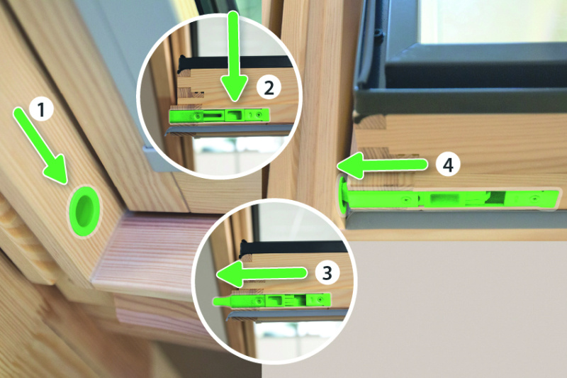 Fot. 4. Aby bezpiecznie i wygodnie umyć okno dachowe wystarczy obrócić skrzydło i zablokować je w ościeżnicy zasuwką umieszczoną w skrzydle.