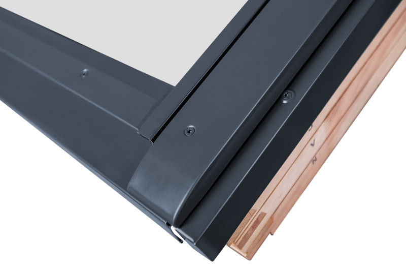 Od zewnątrz w połaci dachowej widoczne jest oblachowanie okna wraz z kołnierzem uszczelniającym. Tutaj również możemy zadbać o spójny wygląd. Oblachowanie i kołnierz można bowiem zamówić w jednym z trzech kolorów, odpowiadających najbardziej popularnym odcieniom pokryć dachowych: antracytowym, szarobrązowym oraz czarnym.