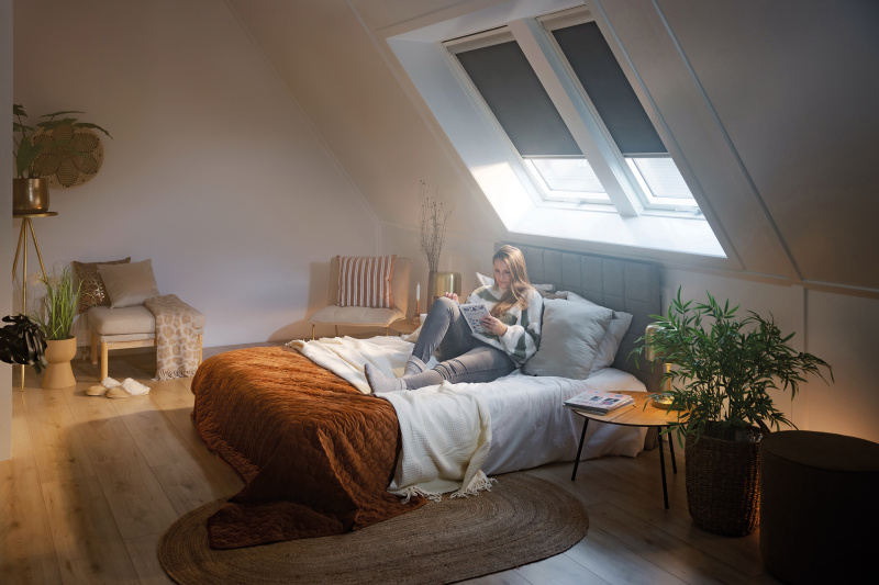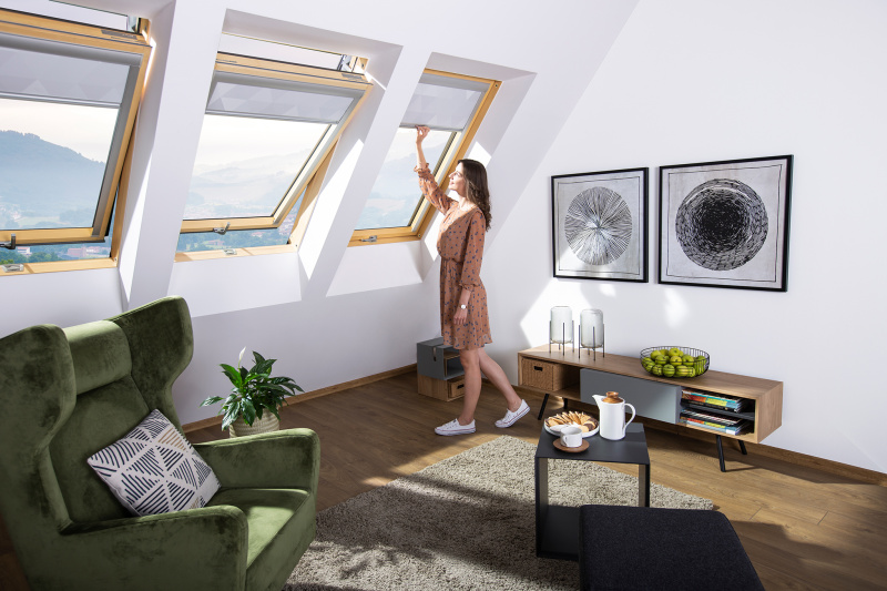 Zdjęcie otwierające: Rolety wewnętrzne do okien dachowych pozwalają nam regulować ilość światła na poddaszu.