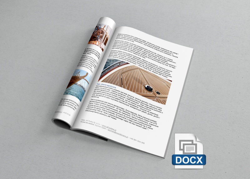„Oprócz drewna litego, ważne miejsce w szkutnictwie zajmują forniry, czyli okleiny naturalne. Ich grubość wynosi poniżej 1 mm (zwykle 0,5-0,6 mm), a obłogów od 1mm i wzwyż. Forniry, jak i obłogi, pozyskane w wyniku skrawania płaskiego, zachowują efektowny rysunek drewna. Co więcej, mogą pochodzić niemal z każdego gatunku drewna. Okleina naturalna to sposób, aby uzyskać ekskluzywny wygląd bez użycia drewna litego – np. jako wierzchnia warstwa mebli, drzwi i ścian kajut.” – tłumaczy Maciej Pawluczuk, ekspert JAF Polska