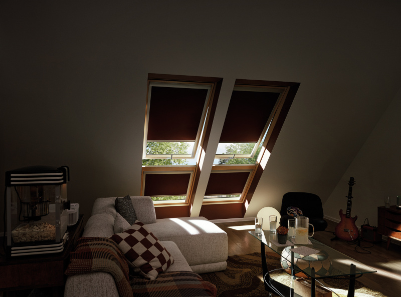 Zdj.3. Roleta ARZ Komfort sterowana elektrycznie skutecznie chroni poddasze przed nadmiarem ciepła i umożliwia wygodne sterowanie światłem za pomocą pilota lub aplikacji.