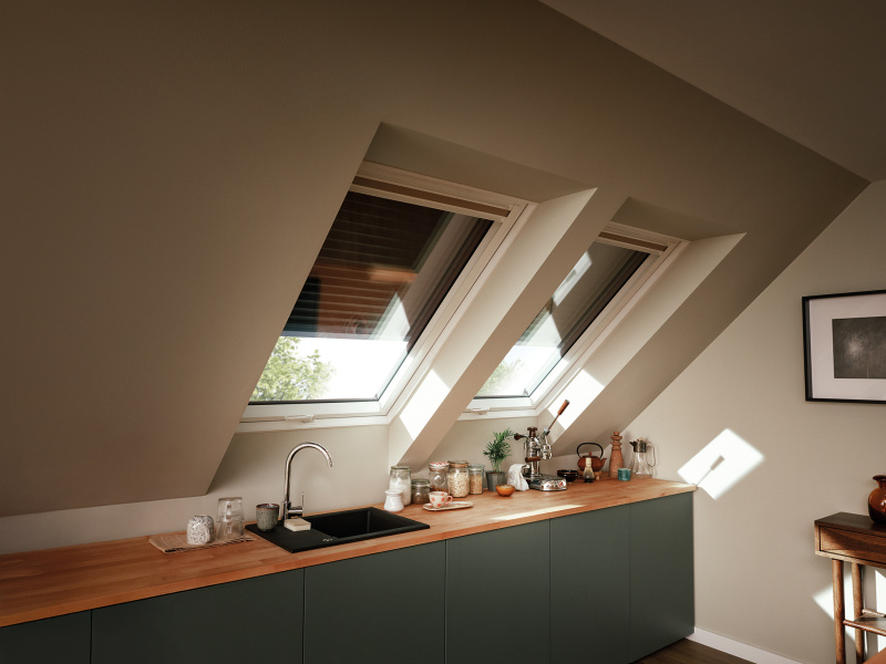 Zdjęcie otwierające: Okno dachowe GREENVIEW i roleta plisowana APF pozwalają precyzyjnie regulować światło, tworząc komfortową przestrzeń do wspólnych chwil.