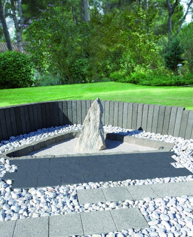 Ogrodom orientalnym przyświeca przede wszystkim zasada prostej elegancji i naturalności, dlatego też styl ten doskonale harmonizuje z nowoczesną, minimalistyczną architekturą i prostą bryłą budynku. Jest to również doskonałe uzupełnienie otoczenia zrewitalizowanej kostki z lat 70-tych. Zabierając się za aranżację takich posesji należy ze szczególną starannością dobierać znajdujące się na niej elementy, uważając jednocześnie, by nie przesadzić z nadmiarem dekoracji. Nie ma tu miejsca na pstrokate kolory, a kluczową odgrywa w nim zieleń. Wybierać należy gatunki niewysokie, które dobrze poddają się formowaniu, tzw. bonsai. Często spotykane rodzaje roślin zielonych, to królująca sosna, miłorząb japoński, bambus, jak również różnego rodzaju mchy porastające skarpy i kamienie. Jeśli zdecydujemy się na dodanie kwitnących roślin, należy pamiętać, by nie przesadzić z kolorami i utrzymać je w jednej gamie barw, najlepiej pastelowych odcieniach różu i fioletu. Odpowiednie będą magnolie, azalie, wiśnie, różaneczniki, jaśminowce, rododendrony, a nawet rodzime astry czy chryzantemy. Ważne by wybierać odmiany odporne na niskie temperatury panujące w okresie jesienno-zimowym. Ciekawym zabiegiem, charakterystycznym dla tego typu ogrodów, jest kaskadowe ułożenie terenu obsadzonego roślinnością. Na płaskim obszarze efekt ten uzyskać można stosując różnego rodzaju murki, np. murek oporowy Polbruk Grando. Jego łupana struktura przypominająca naturalny kamień doskonale wpisuje się w konwencję, a jednocześnie pozwala na stworzenie efektownych nierówności. Do tego typu zadań wykorzystać można również gładkie obrzeże Polbruk Modern lub Palisady Łamane. Tego typu akcesoria przydatne będą również przy tworzeniu niewielkich wodospadów – element wody jest bowiem bardzo charakterystyczny dla japońskich ogrodów. Jeśli natomiast nie mamy możliwości nawodnienia terenu, efekt ten uzyskać można wysypując fragment białym żwirkiem. By uregulować bieg kamiennej rzeki i zapobiec rozsypywaniu się żwirku po całym ogrodzie, brzegi wyłożyć można niewysokim obrzeżem Polbruk Canto.