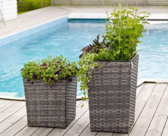 Następca naturalnego rattanu, wzbogacony od swojego poprzednika o jedną, istotną cechę – trwałość. Wytworzony z polietylenu, jest całkowicie ekologiczny, a przy tym może posłużyć nam wiele lat. Charakteryzuje się wysoką odpornością na działanie wilgoci, promieni słonecznych czy bardzo wysokich lub niskich temperatur. Jego zaletami są też plastyczność oraz łatwość w utrzymaniu czystości. Ze względu na coraz częściej pojawiające się na naszych tarasach i w ogrodach meble wykonane z tego tworzywa, donice stworzą spójną aranżację.