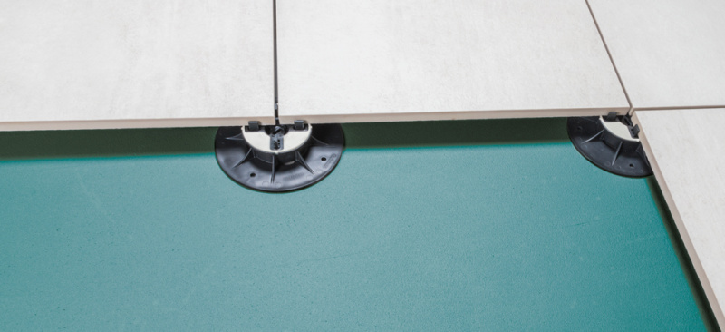 Płytki na wspornikach należy układać metodą podłogi pływającej. Aby nie uszkodzić mechanicznie położonej wcześniej izolacji, wsporniki powinny być układane na podkładkach dystansowych z tworzywa sztucznego. Podczas montażu należy zwrócić szczególną uwagę, aby nie przewiercić izolacji.
