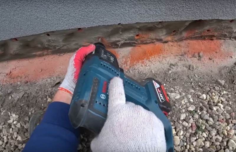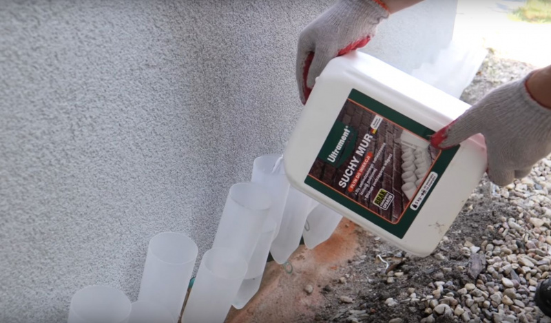 Przed aplikacją płynu iniekcyjnego konieczne jest skucie (na wysokości 50-80 cm powyżej widocznej granicy zawilgocenia) przemoczonych, zasolonych tynków i powłok malarskich. Powinno się również usunąć wszystkie luźne elementy, np. fragmenty cegieł i spoin (do głębokości ok. 2 cm), wypełniając je odpowiednią zaprawą wyrównującą.