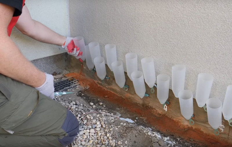 – Linia otworów powinna się znajdować na wysokości co najmniej 10 cm nad uszkodzoną izolacją poziomą.