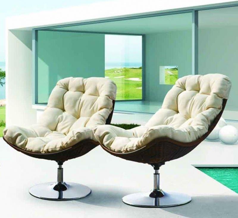 Nowoczesny obrotowy fotel idealny do ogrodu lub na taras. Duże i wygodne poduszki wpływają wysoki na komfort wypoczynku. Stalowa podstawa gwarantuje bezpieczeństwo i stabilność podczas wypoczynku. Fotel swym oryginalnym kształtem urozmaici każdy ogród lub taras.