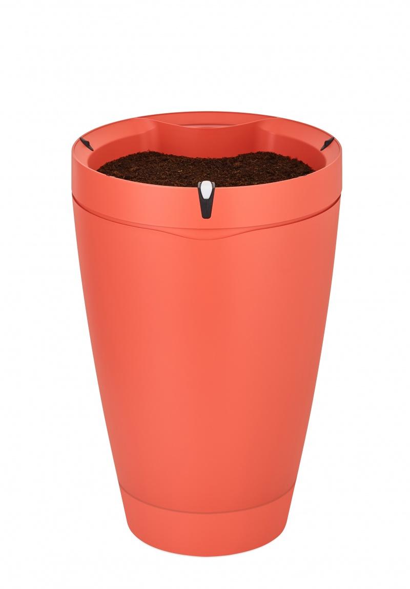 o Nawilżenie gleby jest przedstawione za pomocą przezroczystego przekroju doniczki, co dodatkowo pozwala sprawdzić poziom dostępnej wody