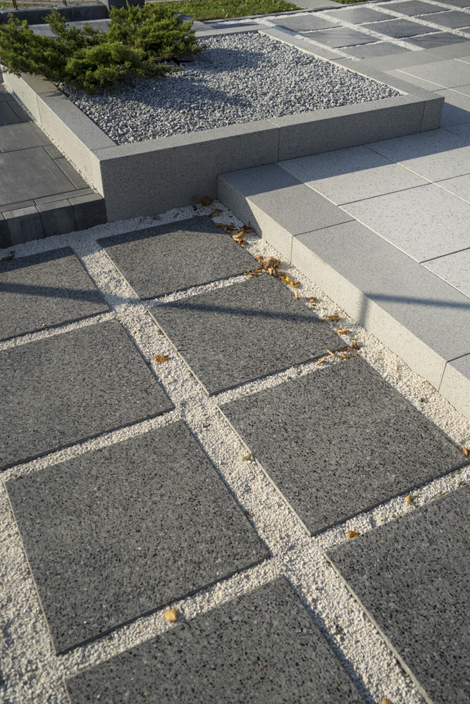 Dostępne kolory: biało-szary, szaro-siwy, szaro-stalowy, biało-szaro-granitowy, stalowo-szary otoczak, granit szary gruboziarnisty, granodioryt, granit szary, granit czarny.