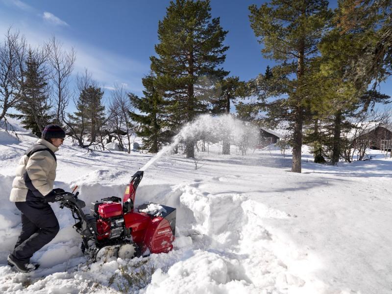 Nowa odśnieżarka Honda HSS 1380 ET z napędem hydrostatycznym jest rekomendowana do intensywnego usuwania śniegu w trybie nieregularnym powierzchni o średniej i dużej wielkości. Napęd hydrostatyczny umożliwia użytkownikowi wybór optymalnej prędkości maszyny do grubości warstwy śniegu. Wyposażona w silnik o mocy 11,6K* i zbierak o szerokości 81 cm odśnieża do 65 ton śniegu w ciągu godziny i odrzuca go na odległość do 17 m. Odśnieżarka jest łatwa w uruchomieniu – nawet w bardzo niskiej temperaturze. Regulowana wysokość zbieraka zapewnia bezpieczeństwo odśnieżanej nawierzchni, a reflektor – zwiększa komfort i bezpieczeństwo pracy. Gąsienicowy układ jezdny zwiększa stabilność maszyny.