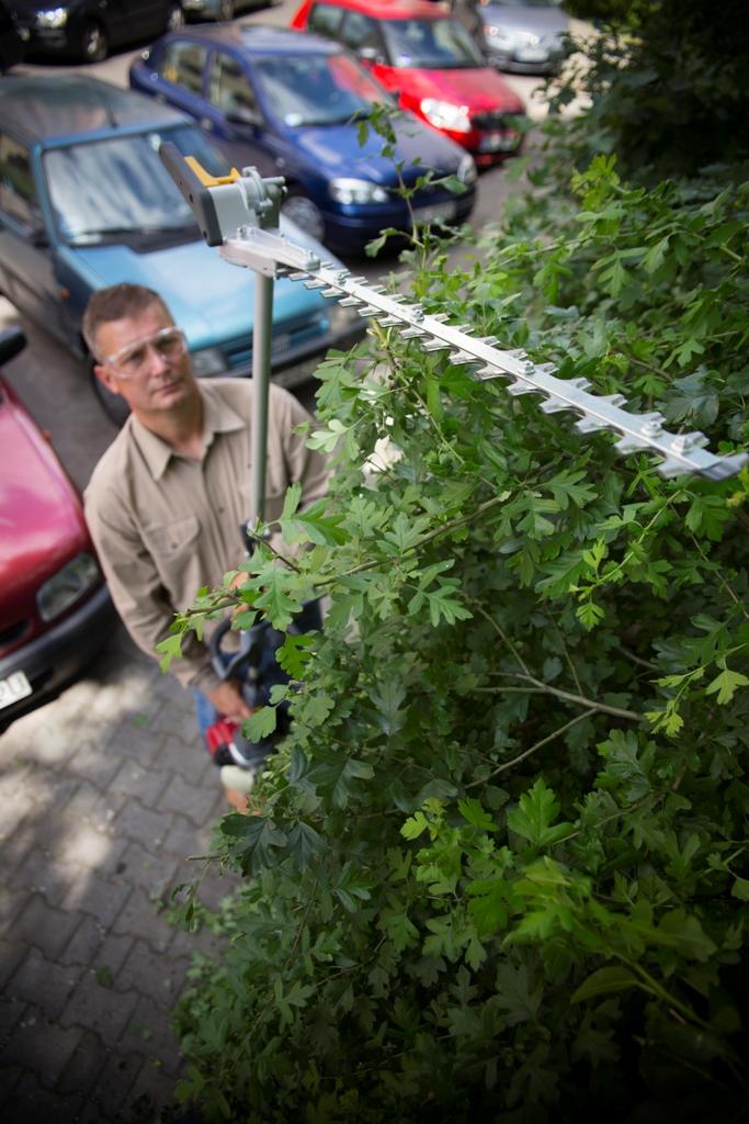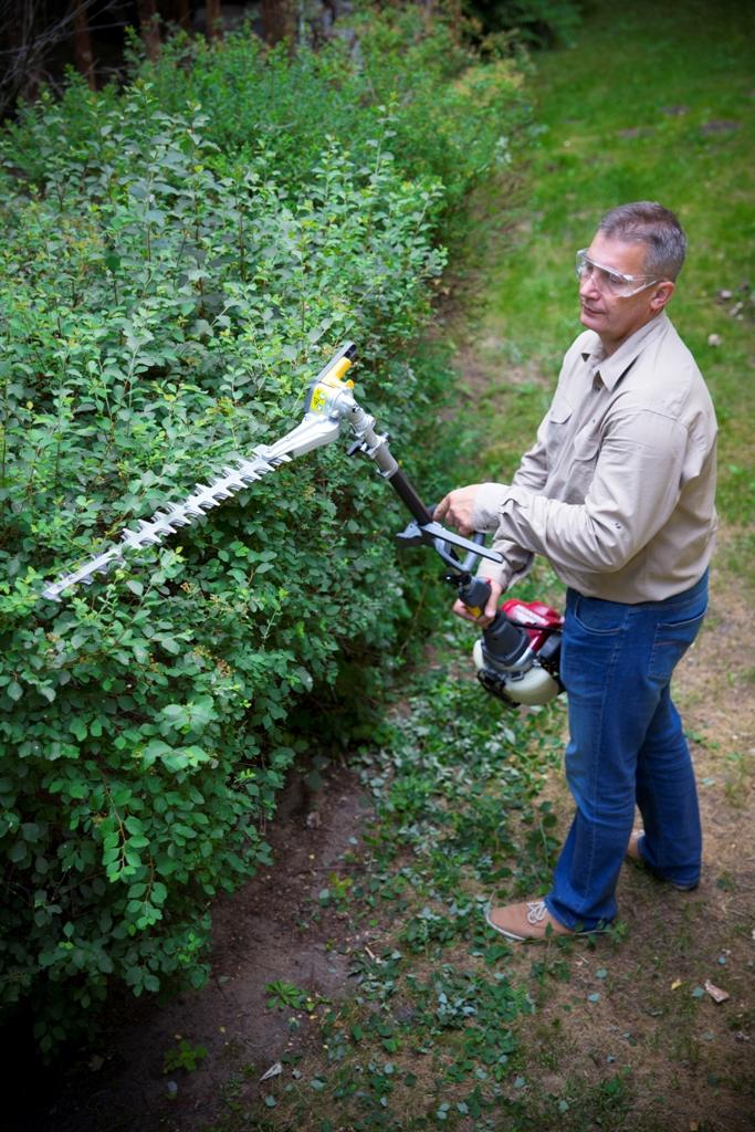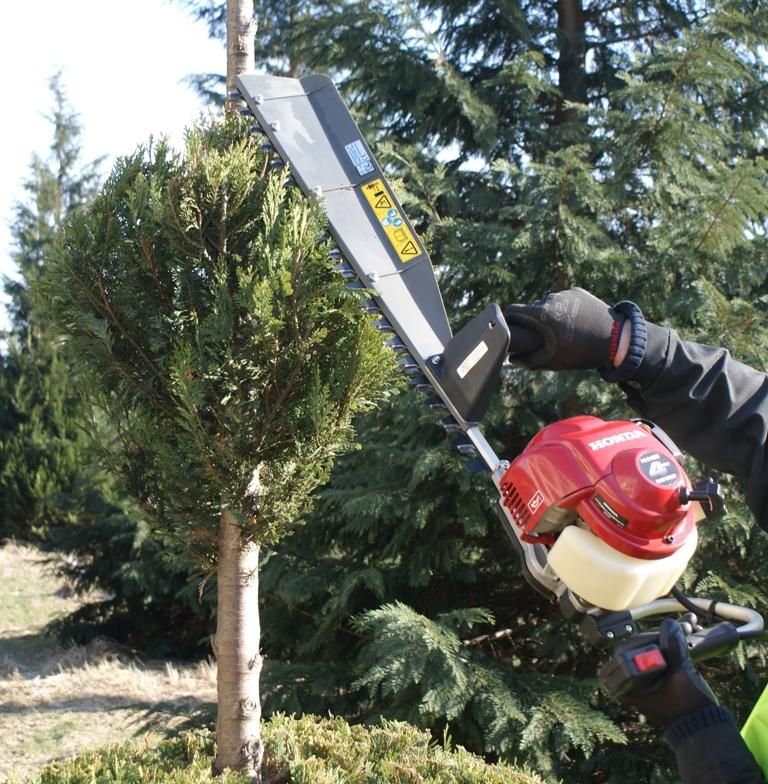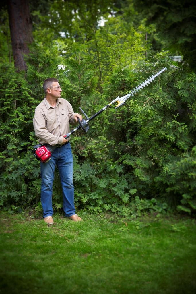 „Najbardziej uniwersalnym narzędziem do przycinania żywopłotów są nożyce, krótkie i długie, Honda Versatool czyli nożyce łączone z jednostką napędową UMC 435 E, które mogą być zastąpione innym narzędziem jak glebogryzarka, wykaszarka czy podkrzesywarka, zależnie od prac, które planujemy wykonywać w ogrodzie.” – wyjaśnia Mariusz Czarnocki. „Jest to narzędzie lekkie i bardzo dobrze wyważone, co zapewnia wygodne manewrowanie ostrzami w płaszczyźnie poziomej i pionowej, nie powodując zmęczenia. Dwustronne ostrze usprawnia pracę i zwiększa jej efektywność, ponieważ ostrza tną pędy za każdym ruchem ręki w górę, na dół czy na boki. Dodatkowym ułatwieniem jest regulacja kąta pracy, która umożliwia dostosowanie ostrzy do warunków i precyzyjne przycinanie roślin. Ich zasięg można znacząco zwiększyć dołączając przedłużki o długości 50 lub 100 cm.”