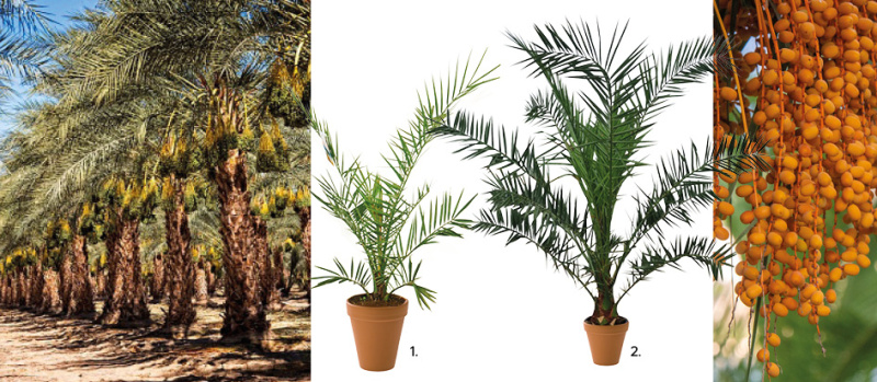 1. Daktylowiec karłowaty 70-80 cm, 299,00 zł, kod 84952017, 2. Daktylowiec kanaryjski 190-210 cm, 399,00 zł, kod 45539655