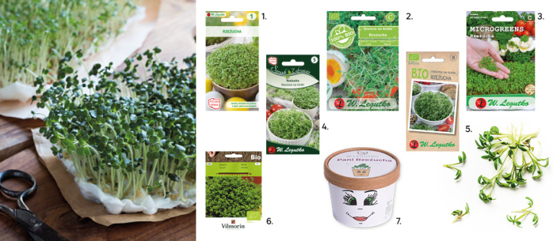 1. Rzeżucha nasiona tradycyjne, 3,10 zł, kod 45409602, 2. Rzeżucha bio, nasiona ekologiczne, 30 g, 7.99 zł, kod 45651102, 3. Rzeżucha microgreens, 7,88 zł, kod 82506147, 5. Rzeżucha na kiełki, 4.39 zł, kod 45407824, 6. Rzeżucha nasiona ekologiczne 7.00 zł, kod 45833200, 6. Rzeżucha Bio, 5g, 3.20 zł, kod 44023490, kubek Pani Rzeżucha 15,30, kod 84495935