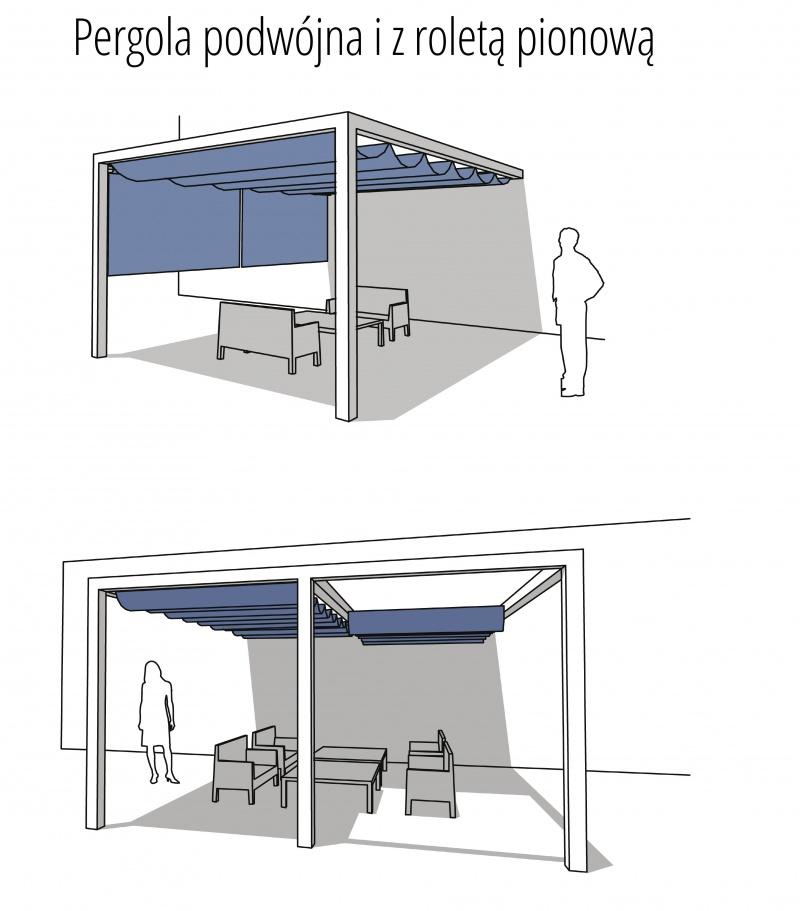 Doskonałym uzupełnieniem pergoli są rolety: rzymskie poziome i pionowe. Wykonane są z mocnego materiału HDPE z filtrem UV, który blokuje do 95% szkodliwych promieni UV. Występują w wielu kolorach i dowolnych rozmiarach, dzięki czemu bez problemu można je dopasować do pergoli i tarasowej kolorystyki. Co więcej, rolety pionowe doskonale sprawdzą się jako element osłaniający od słońca nie tylko w pergolach, ale i w altanach, ogrodach zimowych i innych ogrodowych konstrukcjach.