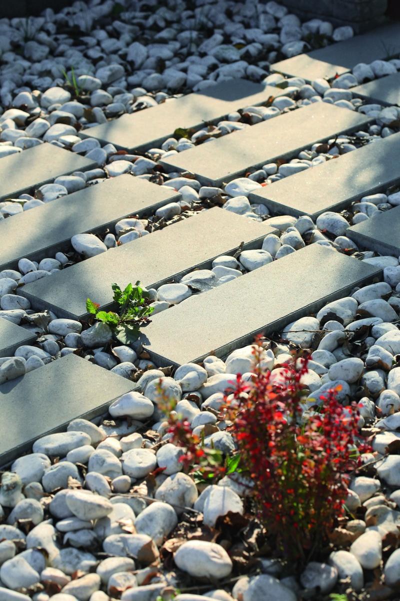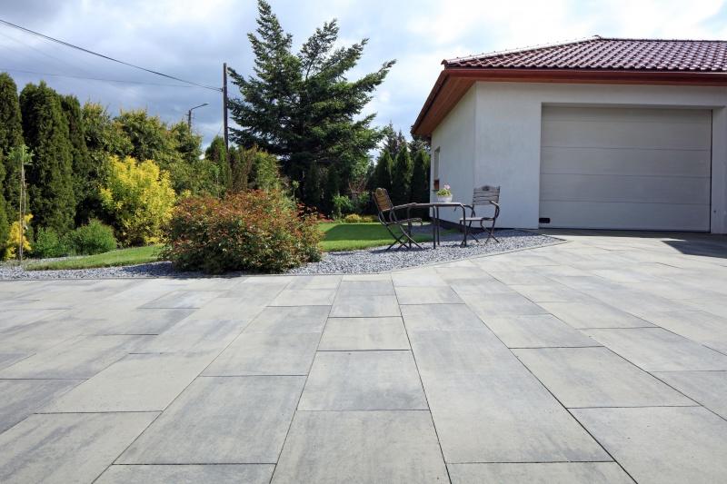 Elementy w formacie 25×30 cm, 60×40 cm, czy 50×75 cm, które są umiejętnie dobrane i rozmieszczone na rozległych obszarach, można łączyć z dodatkami takimi jak żwir i trawnik. Położone w sąsiedztwie pomogą uniknąć efektu „betonowej pustyni”, dzięki czemu osiągniemy oryginalny, atrakcyjny wizualnie rezultat. W innym wypadku można postarać się o rabaty i nasadzenia w dużych, geometrycznych donicach, które zróżnicują poziomy, urozmaicając tym samym całą przestrzeń. Na mniejszych powierzchniach zaleca się układanie płyt jedna przy drugiej, jednolicie, co także będzie stanowić ozdobę posesji.