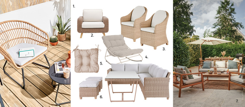 1. Fotel ogrodowy Timea Naterial 799,00 zł, 2., Fotel ogrodowy z poduszką Naterial 1699,00 zł, Fotel ogrodowy Medena 2 szt. aluminium rattan Naterial 1499,00 zł/paczka, 4. Fotel bujany z poduszką Fotel bujany Cloud 599,00 zł, 5. Poduszka beżowa 42x42cm Vog, 26,90 zł, Meble ogrodowe zestaw technorattanowe Medena Naterial, 5999,00 zł