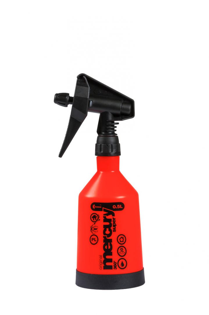 KWZ-2-0003-2Mercury Super 360 o pojemności 0,5l oraz 1l idealnie sprawdzi się przy pielęgnacji niewielkich roślin w doniczkach. Unikatowy system oprysku Double Action® dodatkowo zwiększa jego wydajność – rozpylenie cieczy następuje zarówno przy naciśnięciu jak i zwolnieniu dźwigni pompki.