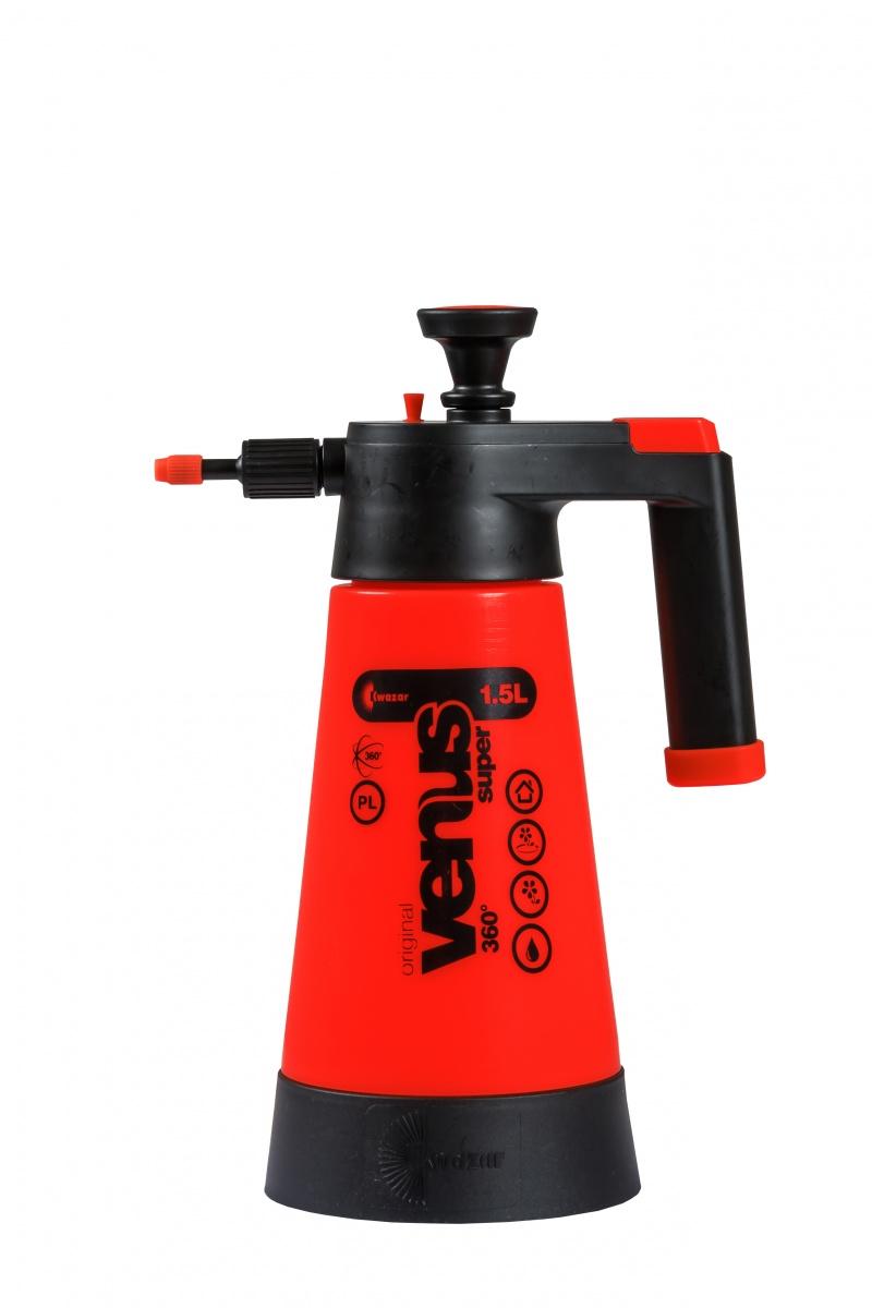 Venus Super 360 to ręczny opryskiwacz ciśnieniowy, który umożliwia oprysk regularnym, stałym strumieniem. Zupełnie nowa pompa oraz konstrukcja głowicy zwiększają zawirowanie cieczy, a ruchoma końcówka pozwala na swobodną regulację kąta oprysku. Venus Super 360 jest idealny do pielęgnacji zarówno roślin domowych (np. paproci), jak i roślin ogrodowych – krzewów, drzewek itp. Innowacyjny system 360o pozwala na aplikację cieczy nawet po odwróceniu opryskiwacza do góry dnem!