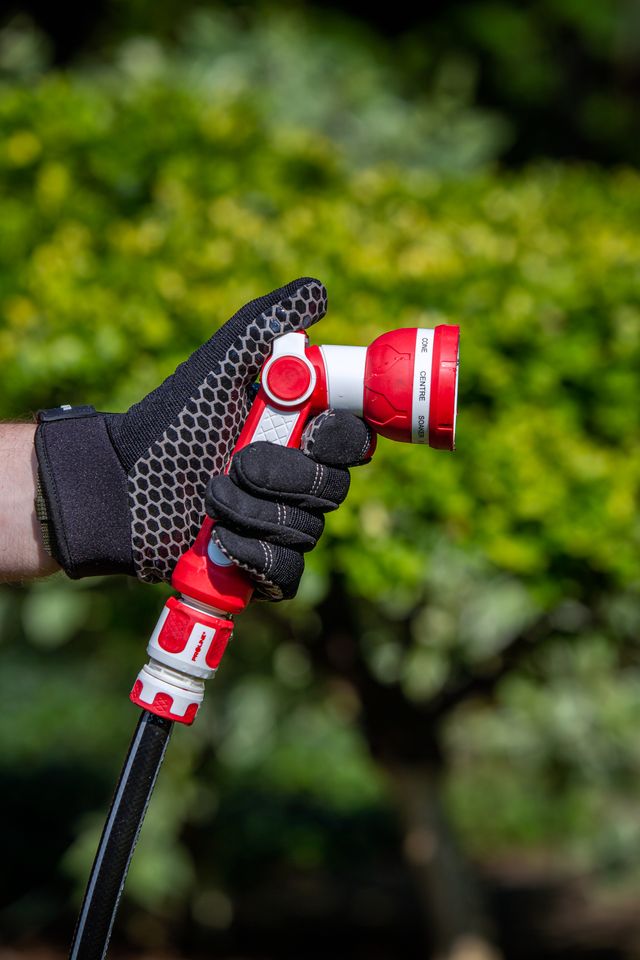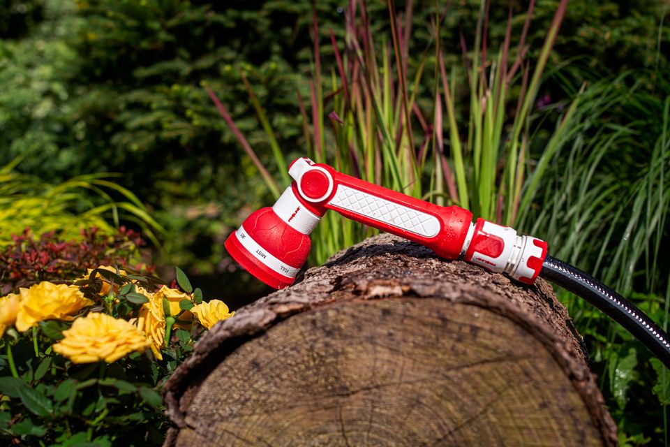 Teraz wszystko jest pod kontrolą i podlewanie staje się precyzyjnie zaplanowaną przyjemnością – również za sprawą zraszaczy w wariancie prostym lub wielofunkcyjnym. Te ostatnie bardziej przypominają słuchawkę prysznica łazienkowego lub pistolet wodny z kilkoma rodzajami strumienia wody do wyboru. Możesz podlewać punktowo, możesz też wytworzyć orzeźwiająca mgiełkę. Możesz też sięgnąć strumieniem wyżej, nie stojąc przy tym na drabinie – w ogóle wszystko możesz!