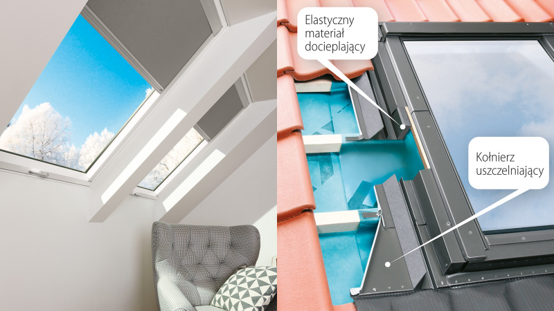 a. z lewej -Zastosowanie energooszczędnych okien dachowych zmniejsza zapotrzebowanie na energię cieplną podczas chłodnych dni na poddaszu.