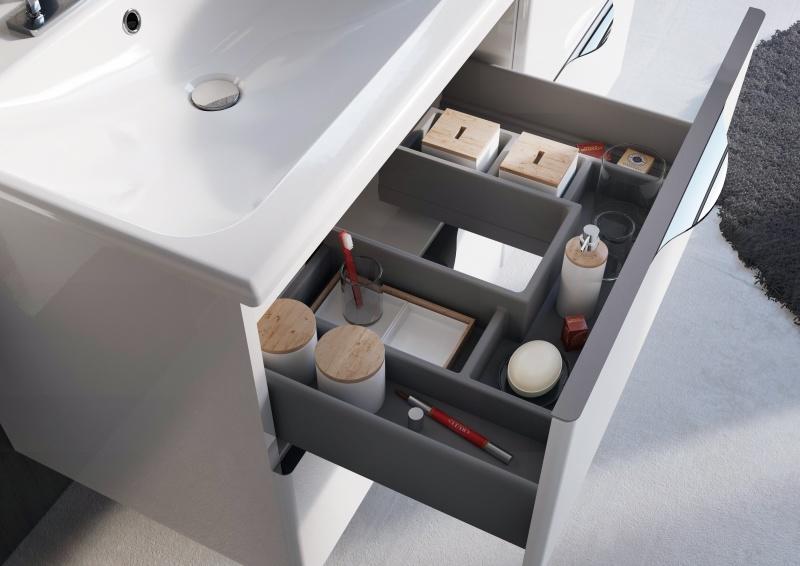 Nieocenioną zaletą mebli jest funkcjonalny organizer umieszczony w pierwszej szufladzie, gwarantujący komfort użytkowania wszystkim domownikom.