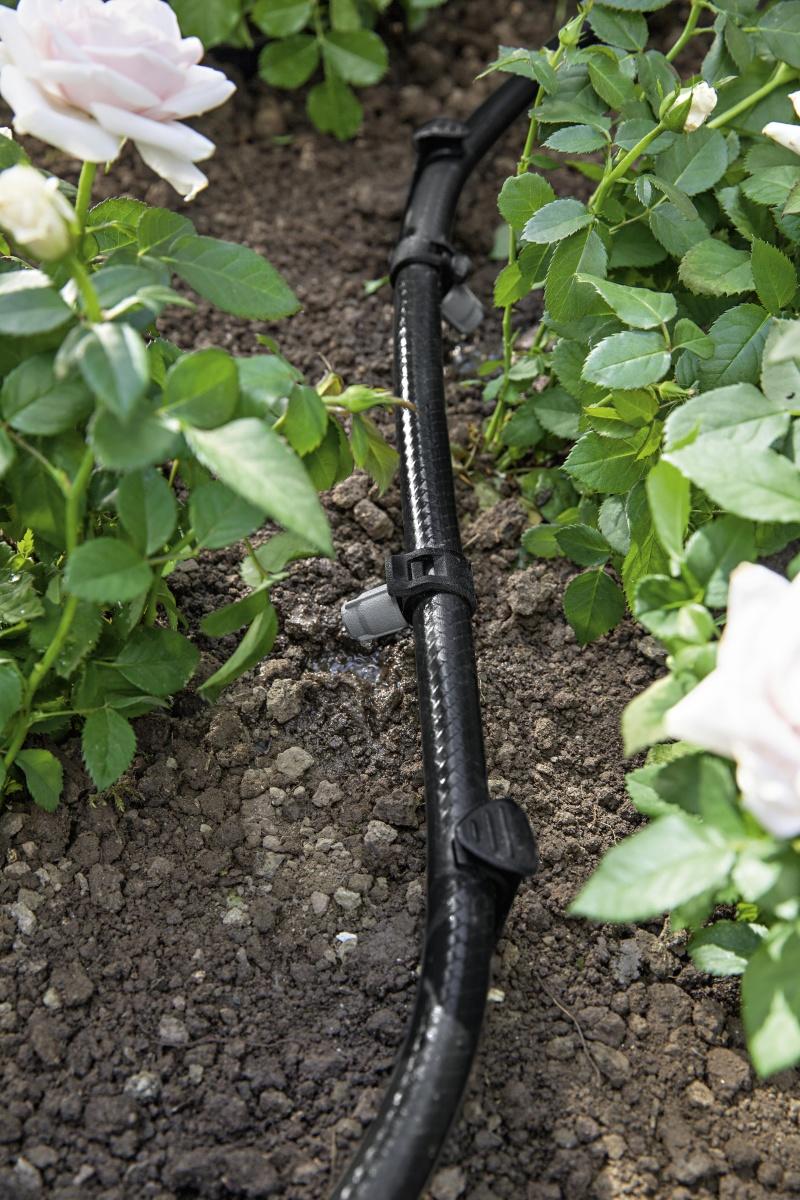 Kärcher Rain System™ umożliwia dostarczanie wody dokładnie tam, gdzie jest potrzebna, a jej ilość można zmieniać w zależności od zapotrzebowania i odpowiednio ustawić dla indywidualnej lokalizacji. W skrócie: maksymalna elastyczność w celu zagwarantowania najwyższej efektywności nawadniania. Rain System™ łączy zalety węży kroplujących i tradycyjnego nawadniania. System pracuje z wodą podawaną pod ciśnieniem do maks. 4 bar, wężami PVC 1/2” oraz dyszami kroplującymi i spryskującymi. Do systemu można zamontować reduktor, który chroni dysze przed zbyt wysokim ciśnieniem oraz filtr, który skutecznie wyłapuje zanieczyszczenia mogące znajdować się w wodzie. Kärcher Rain System™ jest wysoce elastyczny, dzięki czemu można go łatwo dostosować do każdego ogrodu. System doskonale współpracuje z modułem sterującym nawadnianiem – SensoTimer, który samodzielnie dba o właściwy stopień nawilżenia gleby, nawet wtedy, gdy wyjedziemy na urlop. Na cały system składają się: system złączy, węże kroplujące, dysze kroplujące, dysze spryskujące mikro o trzech kątach nawadniania (360°, 180°, 90°) i regulowanym przepływie wody oraz moduł sterujący nawadnianiem SensoTimer ST6 eco!ogic, który samodzielnie dba o właściwy stopień nawilżenia gleby. Czujnik poziomu wilgotności gleby, który jest w zestawie co 30 minut przesyła informacje o jej wilgotności do modułu sterującego. Pożądana wartość wilgotności gleby może zostać dowolnie ustawiona w pięciostopniowej skali. Nawadnianie rozpoczyna się automatycznie w momencie gdy wilgotność gleby spadnie poniżej ustawionej wartości. Programowanie modułu sterującego jest bardzo proste dzięki pięciu dużym przyciskom oraz możliwości zdemontowania panelu sterującego. Maksymalny czas nieprzerwanego nawadniania, jaki można ustawić wynosi 90 minut. Wykorzystując funkcję eco!ogic nawadnianie można opóźnić od 1 do 7 dni. W każdej chwili można również przejść na ręczne sterowanie nawadnianiem. Zintegrowany przycisk pozwala ręcznie opóźnić nawadnianie na 24 godziny.
