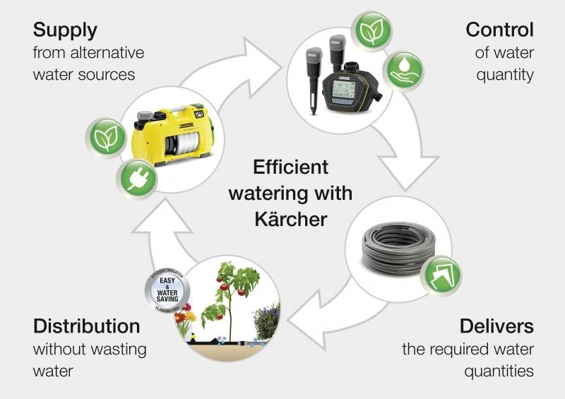 Aby zadbać o optymalne nawadnianie ogrodów najlepszym rozwiązaniem są automatyczne systemy nawadnia, które praktycznie pozwalają zapomnieć o konieczności samodzielnego podlewania. W ofercie Kärcher znaleźć można moduły programowania czasowego, które w połączeniu z czujnikami pomiaru wilgotności gleby, stanowią samowystarczalne systemy.