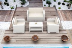 Wykonane są z żywicy odpornej na warunki atmosferyczne dodatkowo wzmocnionej włóknem szklanym. Brak elementów metalowych eliminuje problemy z rdzą. Użyty materiał jest odporny na promienie UV, co zapewnia trwałość kolorów. Dzięki temu produkt charakteryzuje się niebywałą wręcz trwałością i dlatego jest często rekomendowany przez architektów i projektantów wnętrz jako wyposażenie balonu, tarasu basenu czy ogrodu. Przeznaczony również do użytku komercyjnego. Produkt jest dostarczany w elementach, co ułatwia transport i przechowywanie po sezonie. […]