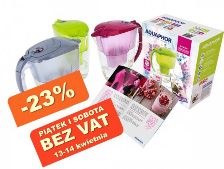 Produkty Aquaphor dostępne są we wszystkich sklepach Biedronki a w piątek oraz sobotę (13 oraz 14 kwietnia) na dzbanki oraz wkłady obowiązuje dodatkowy rabat 23% o wartość podatku VAT!