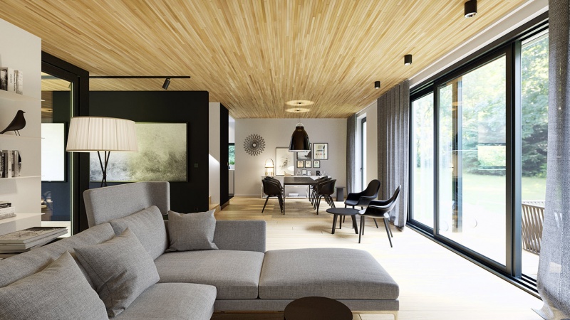 W miejscowości Chyby pod Poznaniem, w pobliżu Jeziora Kierskiego, w otoczeniu drzew powstało osiedle dziesięciu domów – ekorezydencji. Elegancka przestrzeń utrzymana jest w kolorach bieli, grafitu i jasnego surowego drewna. Na podłogach położono drewniany parkiet, dzięki czemu wnętrza nabrały ciepłego charakteru.