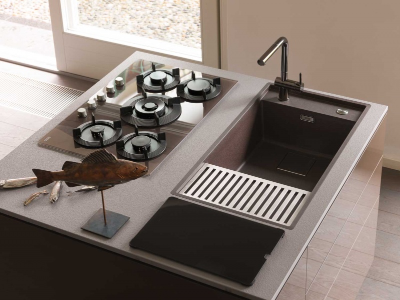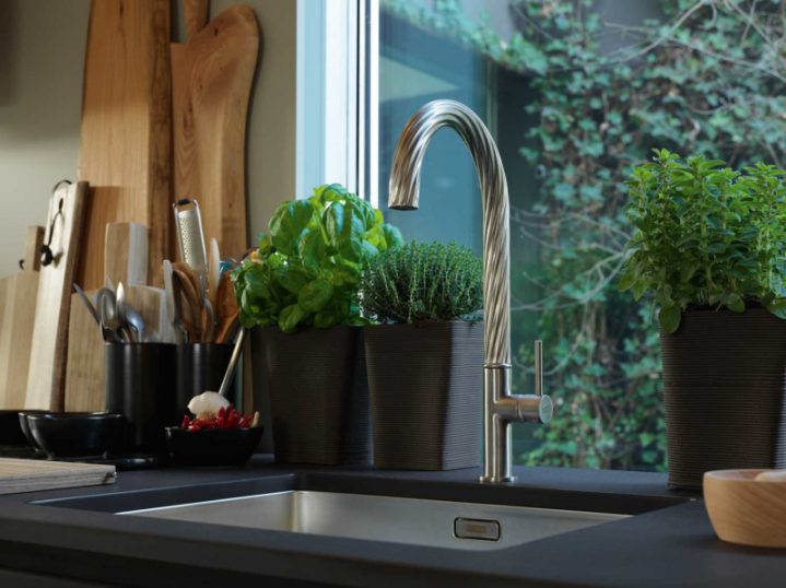 Franke przedstawi w Mediolanie efektowną interpretację linii urządzeń kuchennych Maris, zaprojektowaną przez Drora Benshetritta, współpracującego z marką od ubiegłego roku. Szklana tafla okapu ściennego zyskała bardzo wyrazisty front, podobnie jak pokrętła piekarnika czy żeliwne ruszty nowej płyty grzewczej. Specjalne żłobienia wylewki baterii kuchennej Maris nawiązują w bardzo oryginalny sposób do dynamiki strumienia wody.