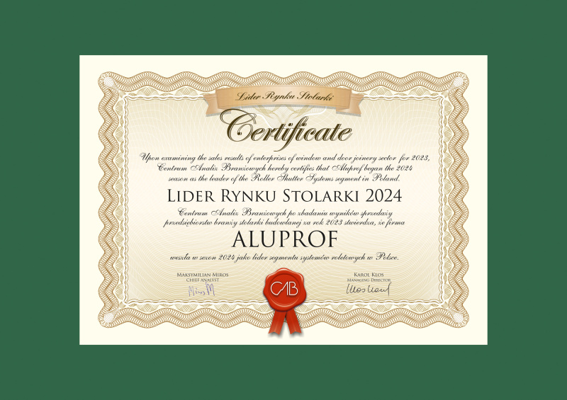 „Zdobycie tytułu Lidera Rynku Stolarki kolejny rok z rzędu, i to w dwóch kluczowych dla nas segmentach – systemów aluminiowych oraz systemów roletowych, to nie tylko ogromny sukces całej spółki, ale przede wszystkim zobowiązanie do dalszej wytężonej pracy nad udoskonalaniem oferowanych przez nas rozwiązań. Jesteśmy dumni, że produkty z logo Aluprof cieszą się uznaniem klientów oraz partnerów biznesowych i przyczyniają się do rozwoju branży budowlanej w Polsce. Otrzymane wyróżnienie pokazuje, że dywersyfikacja oferty, inwestycje w rozwój najnowszych technologii oraz stałe podnoszenie jakości i innowacyjności produktów, także w kontekście wymagań związanych z dążeniem do zeroemisyjności budownictwa, przekładają się na sukces biznesowy i pozwalają nam umacniać się nie tylko na rynku krajowym, ale też poza granicami kraju”, podkreśla Bożena Ryszka, dyrektor Działu Marketingu i PR firmy Aluprof.