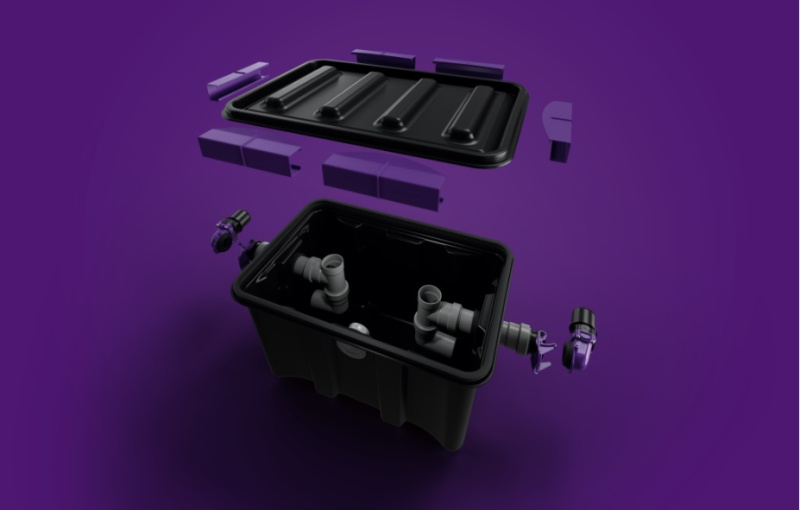 W celu zwiększenia komfortu i szybkości demontażu (opróżniania), separator posiada odpowiednie szybkozłącza, które znajdują się na połączeniach z dopływem i odpływem. Opróżnianie zawartości dodatkowo ułatwia obrotowe (360°) złącze wypinające z możliwością regulacji w pionie. Wydajność 0,7 l/s pozwala na efektywne odprowadzanie ścieków z pojedynczego zlewu.