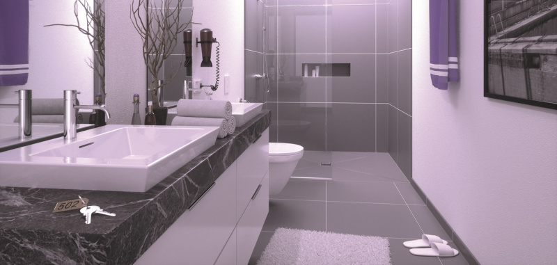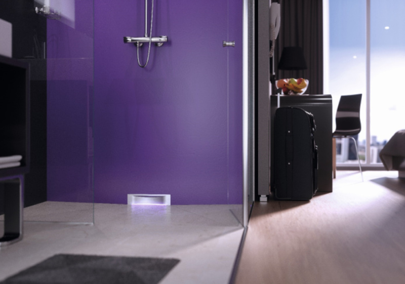 Odpływ zamontowany w ścianie sprawi, że powierzchnia pod stopami stanie się w 100% równa i gładka, nadając każdemu wnętrzu ekskluzywny charakter. Niekonwencjonalnym przykładem jest tu kompaktowy odpływ Scada z nastrojowym rozwiązaniem w formie podświetlenia LED.